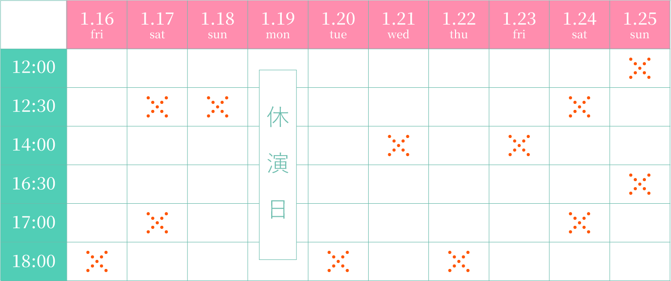 - ※ロビー開場は開演時間の1時間前、客席開場は開演時間の45分前を予定しております。